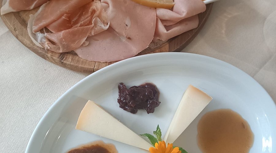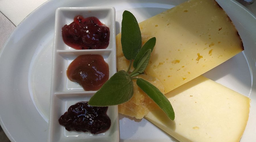 – Pecorino locale con salse assortite (confetture extra di fichi o di pere; mostarda di frutti di bosco; salsa senapata di frutti assortiti; miele)