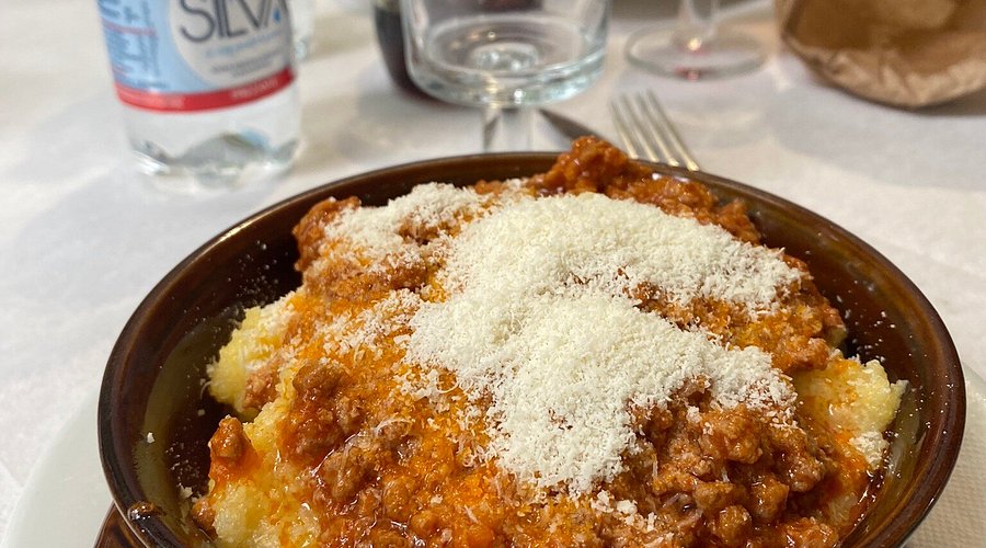 – Polenta di granoturco “cuncia” con ragรน di carne e Parmiggiano grattugiato (Senza Glutine)