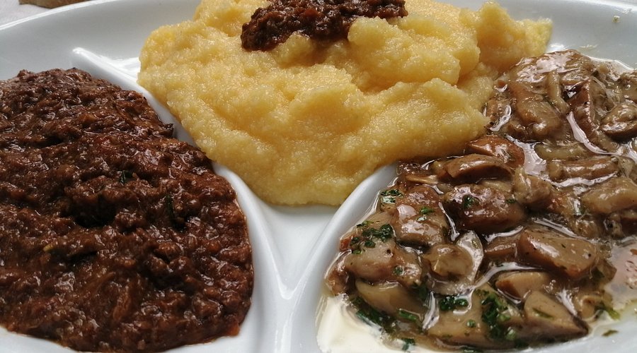 – Tris: Polenta di granoturco, spezzatino di cinghiale, ai funghi porcini trifolati (Senza Glutine)